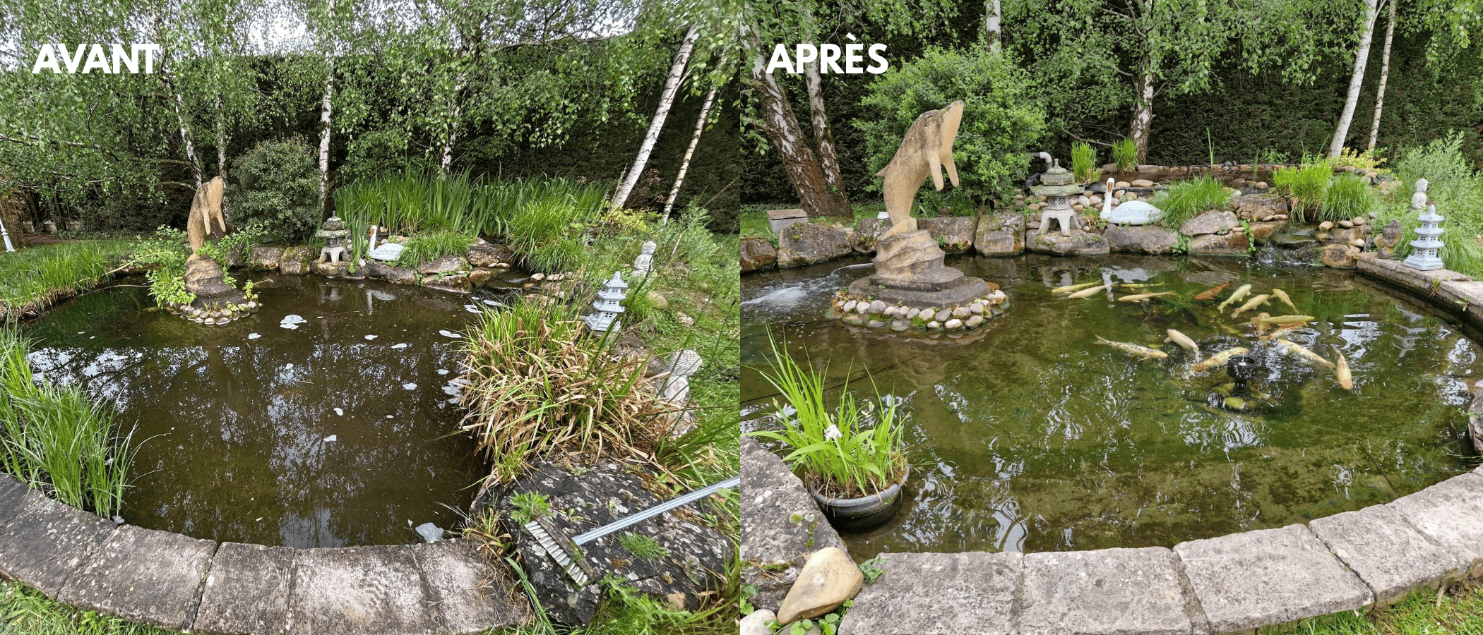 Pour préserver la beauté et la santé de votre bassin, nous proposons des contrats d’entretien incluant nettoyage des filtres, contrôle du pH, désinfection et taille des plantes. Nos techniciens interviennent selon la fréquence choisie pour maintenir une eau claire et un cadre sain pour vos carpes koi, avec interventions rapides en cas d’urgence à Lyon.